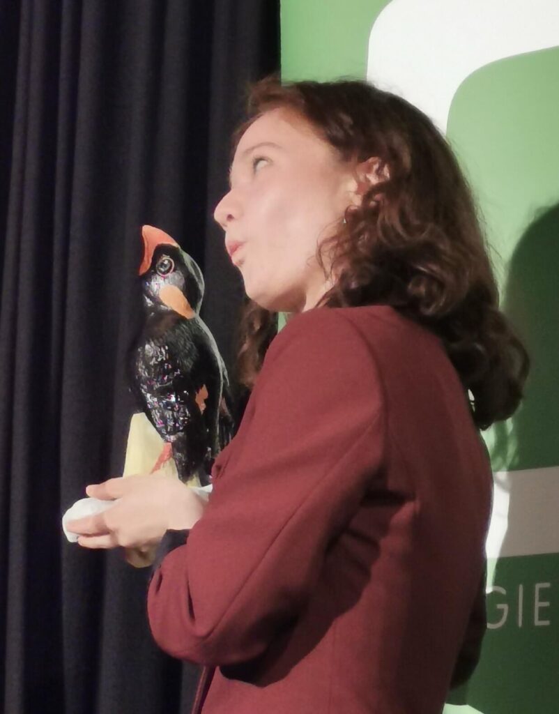 Ich freue mich, dass mein Vogel für den Jury-Preis ausgewählt und an die diesjährige Gewinnerin, Kabarettistin, Singer-Song-Writerin und Schauspielerin Magda Simmel überreicht wurde.