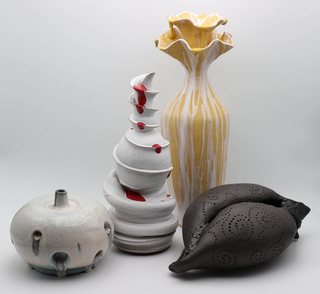 Abschlussausstellung der Meisterklasse Keramik zum Thema ERSCHÖPFUNG, in diesem Fall im Sinne von Schöpfen, Schaffen, Kreieren. Zu sehen sind Persönlichkeitstypologien, wie sie klassischerweise in der Psychologie eingeteilt werden, als skulpturale Gefäße umgesetzt.