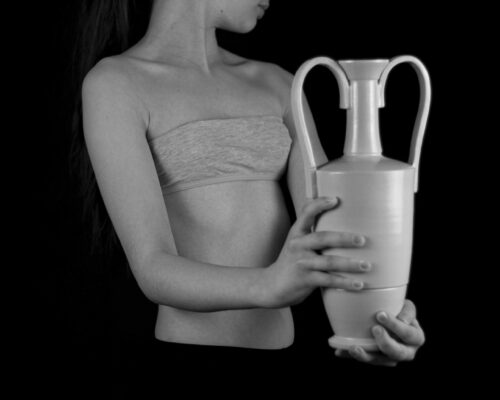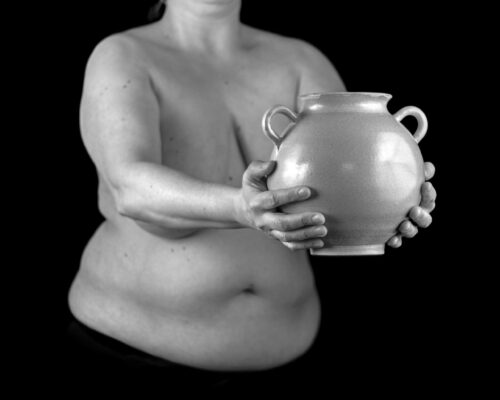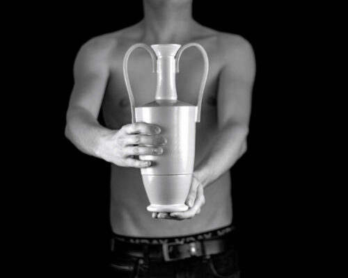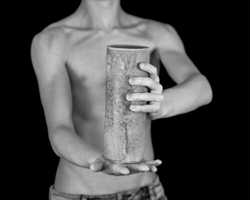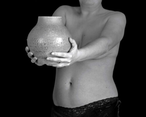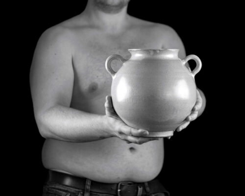 Die Verbindung zwischen Mensch und der ureigensten Form der Keramik, dem Gefäß, findet seine Vollendung in diesen Fotografien, die auch meine Ausstellung dominieren.